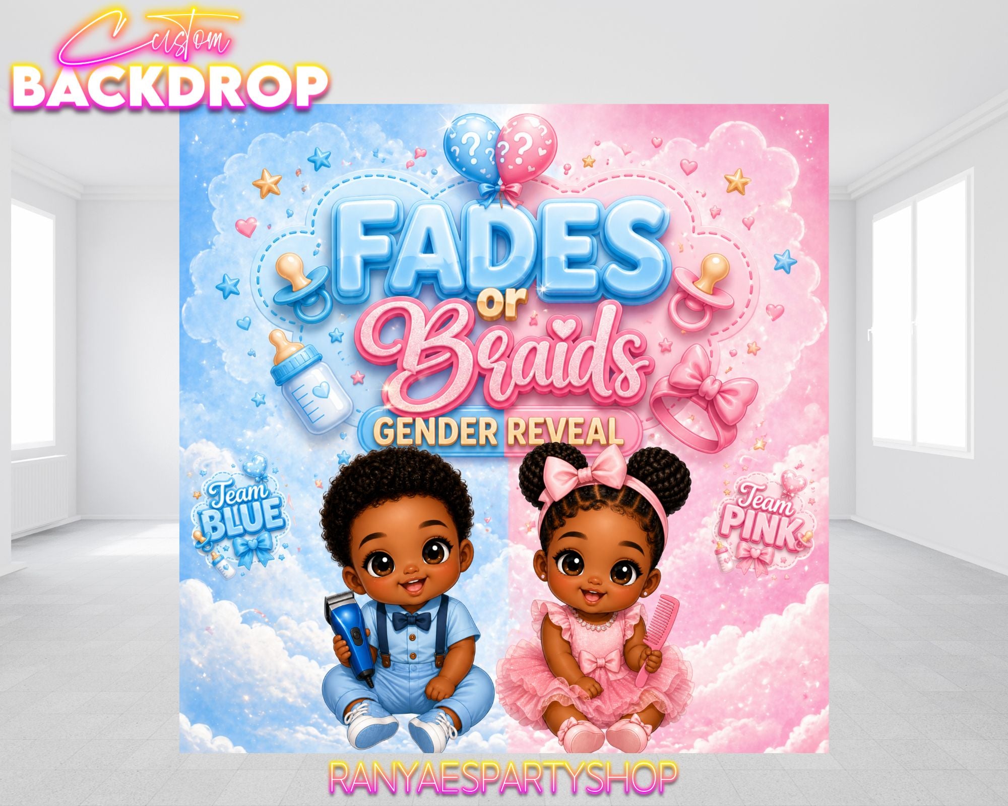Lola or Bugs Space Jam Gender Reveal Backdrop | Gender Reveal Backdrop | Lola or Bugs Gender Reveal