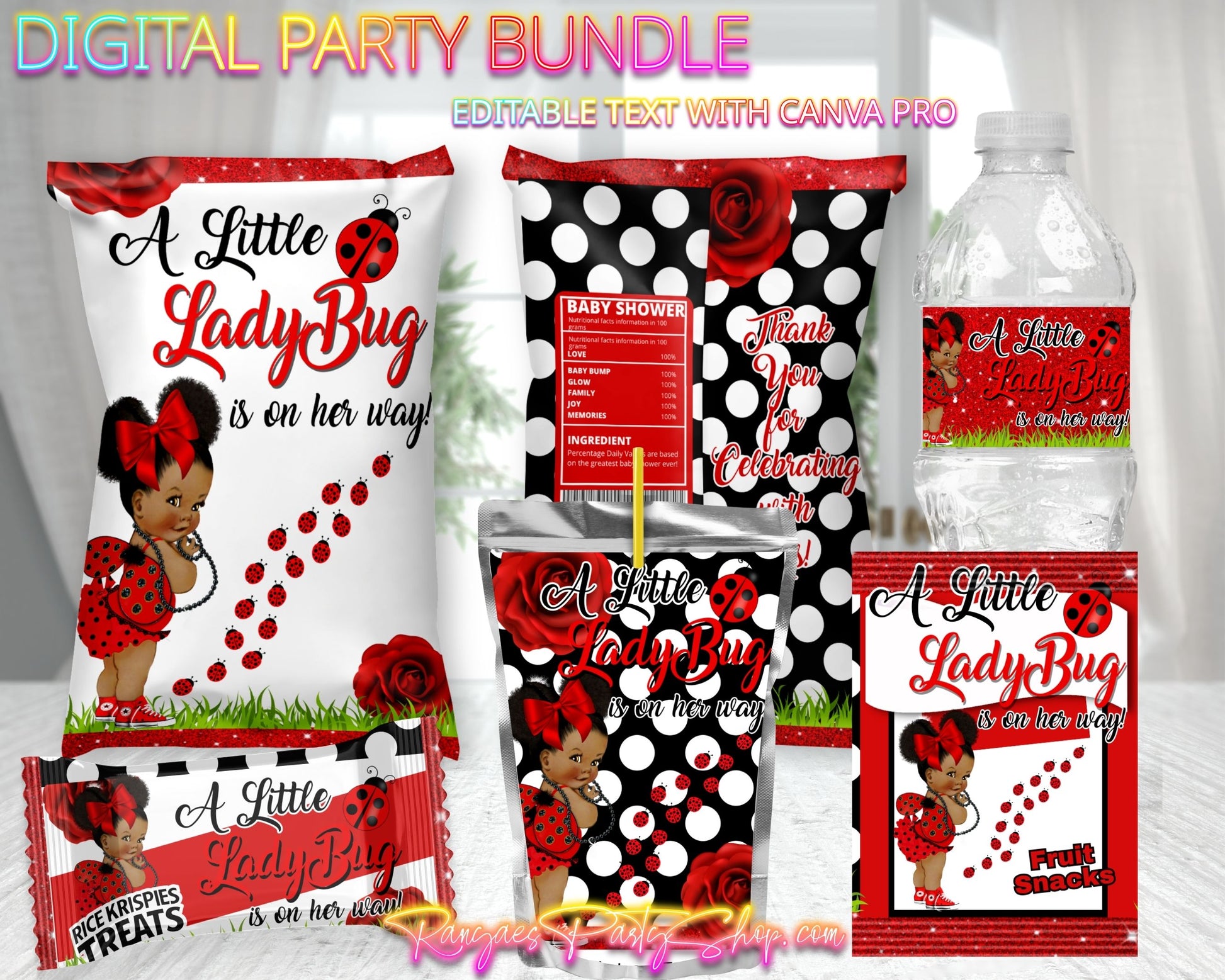 AA Ladybug Baby Shower Digital Bundle | Ladybug Baby Shower | Edit Text with CANVA PRO | Digital File Only