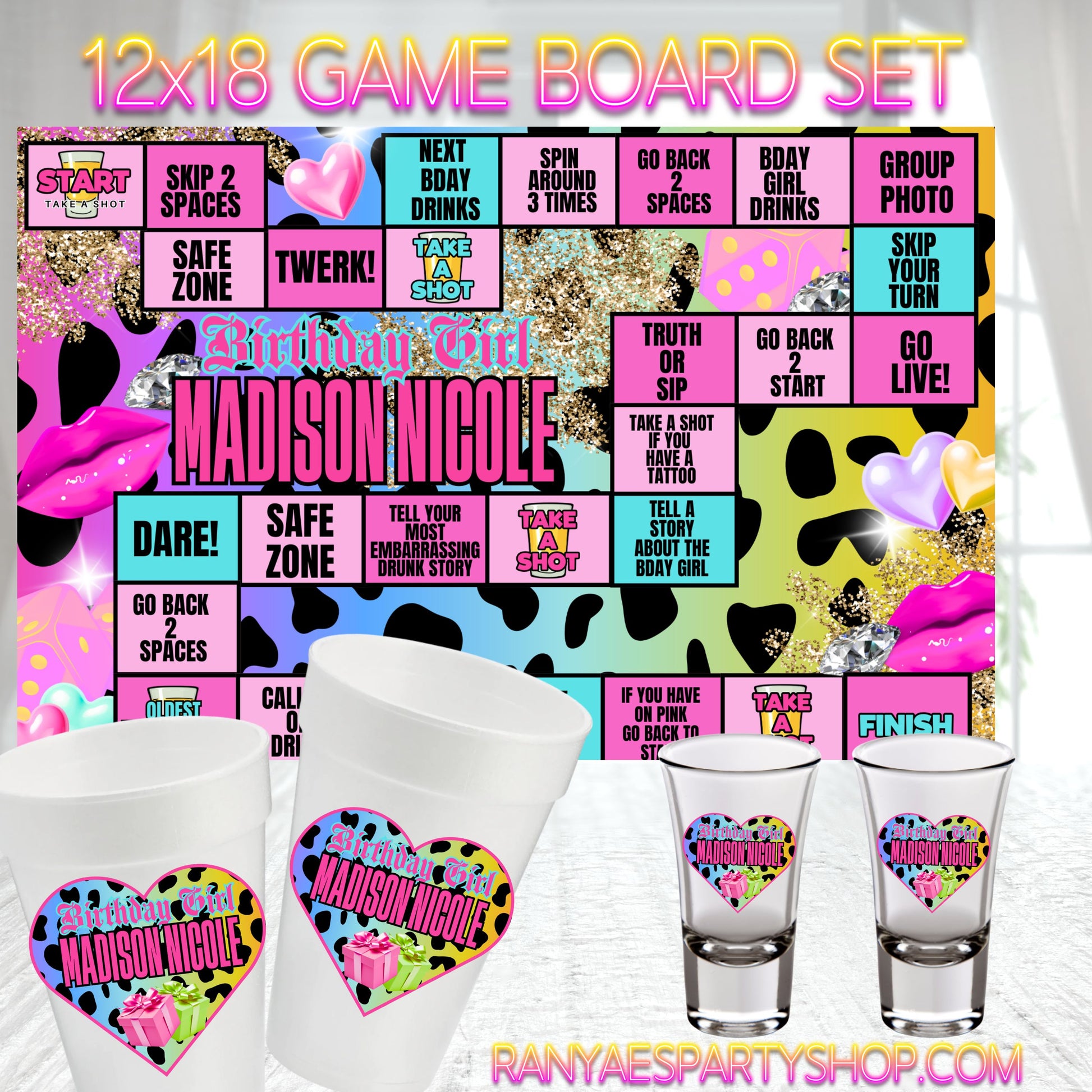 Birthday Game Board Sets | Party Game Boards | Adult Custom Party Items | 12x18 Game Board