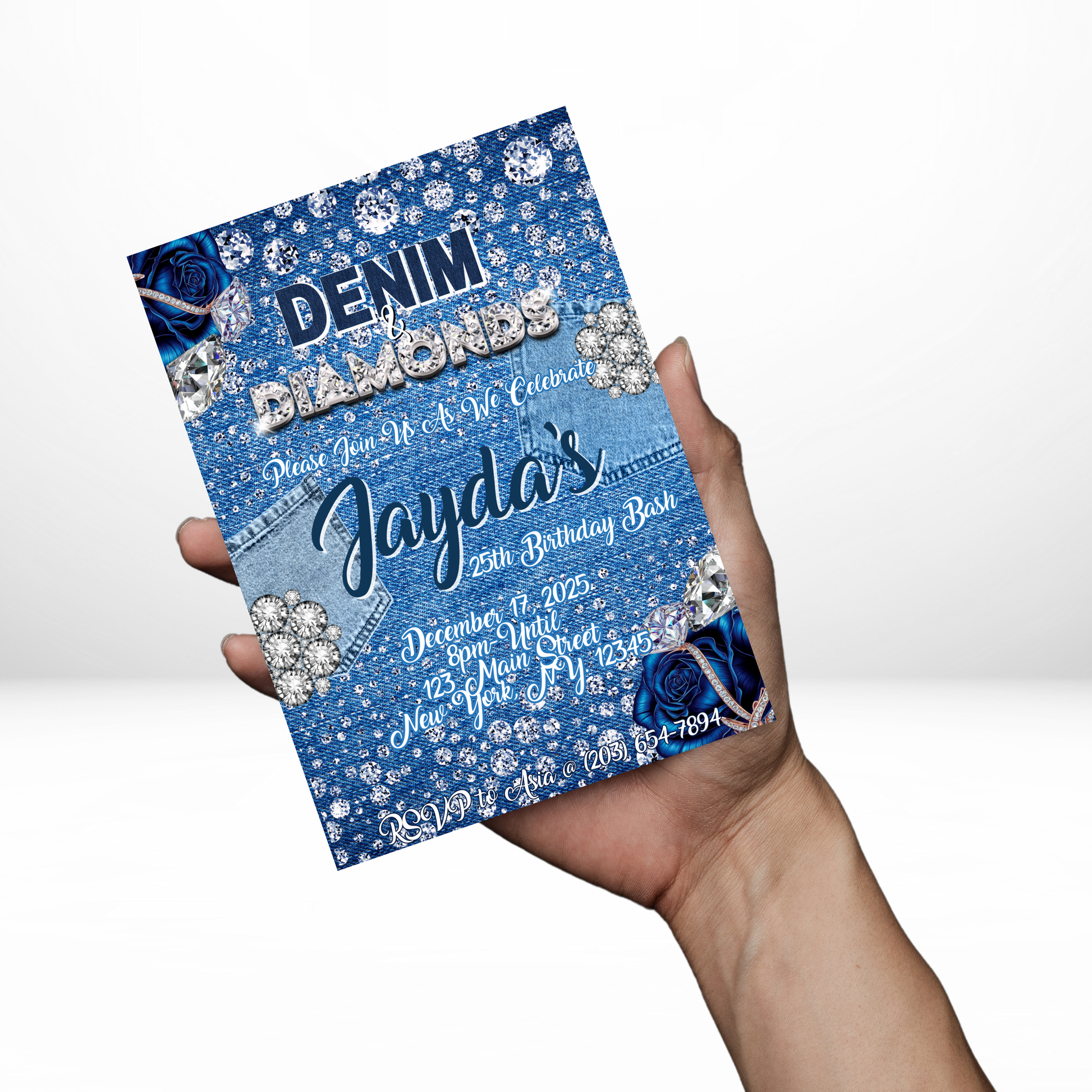 Denim & Diamonds 5x7 Digital Invitation | Denim & Diamonds Birthday Invite | Edit Text with CANVA PRO | Digital File Only