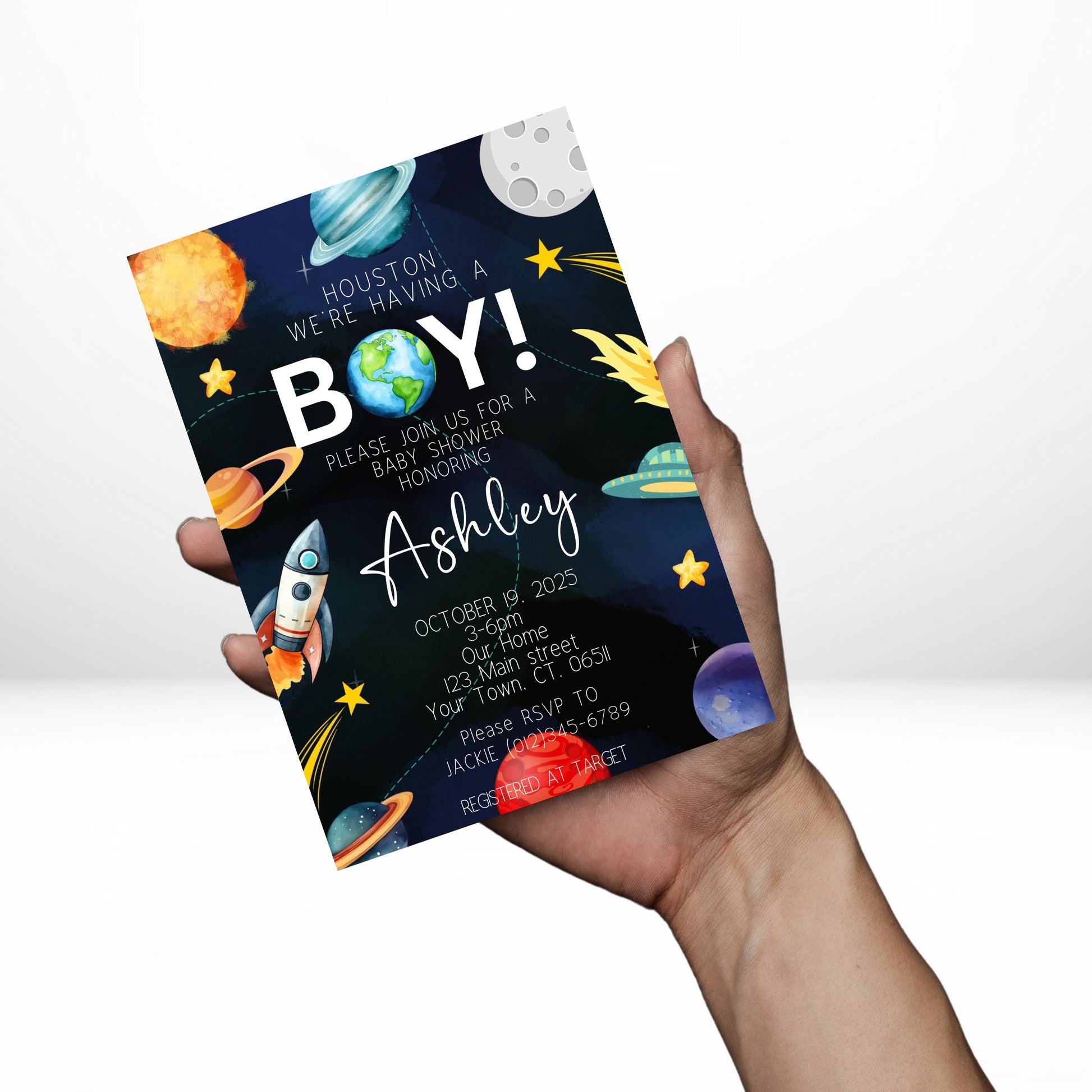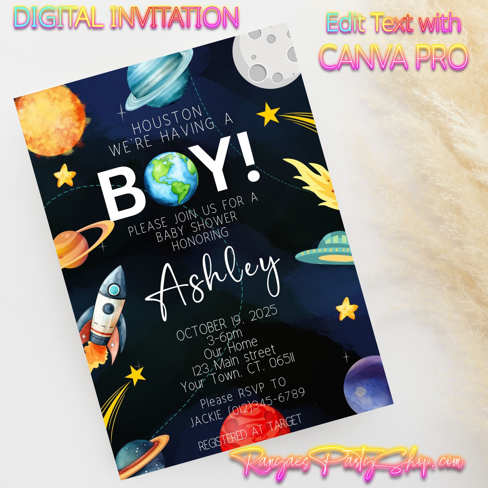 Houston We Have A Boy 5x7 Digital Invitation | Outer Space Baby Shower Invite | Edit Text with CANVA PRO | Digital File Only