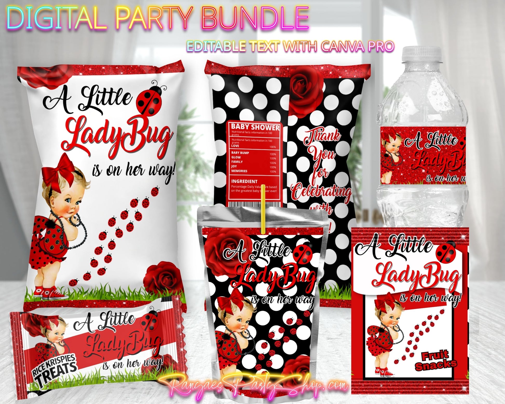 Ladybug Baby Shower Digital Bundle | Ladybug Baby Shower | Edit Text with CANVA PRO | Digital File Only