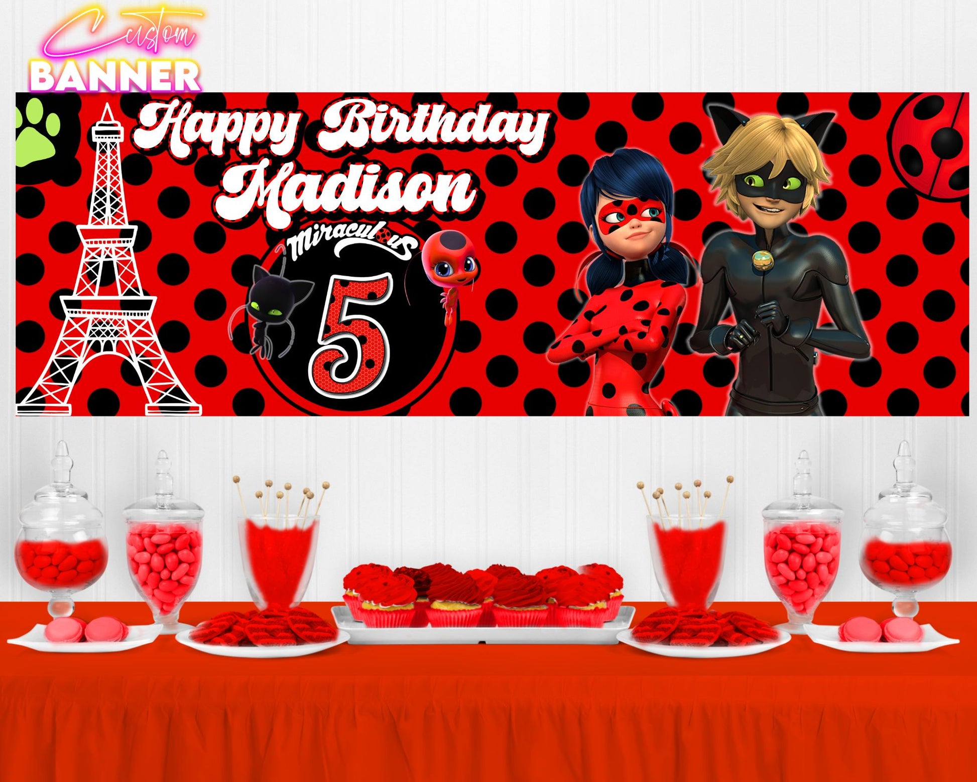 Miraculous Lady Bug Party Banner | Lady Bug Birthday Party | Birthday Party Banner | Party Banner | Printed & Shipped