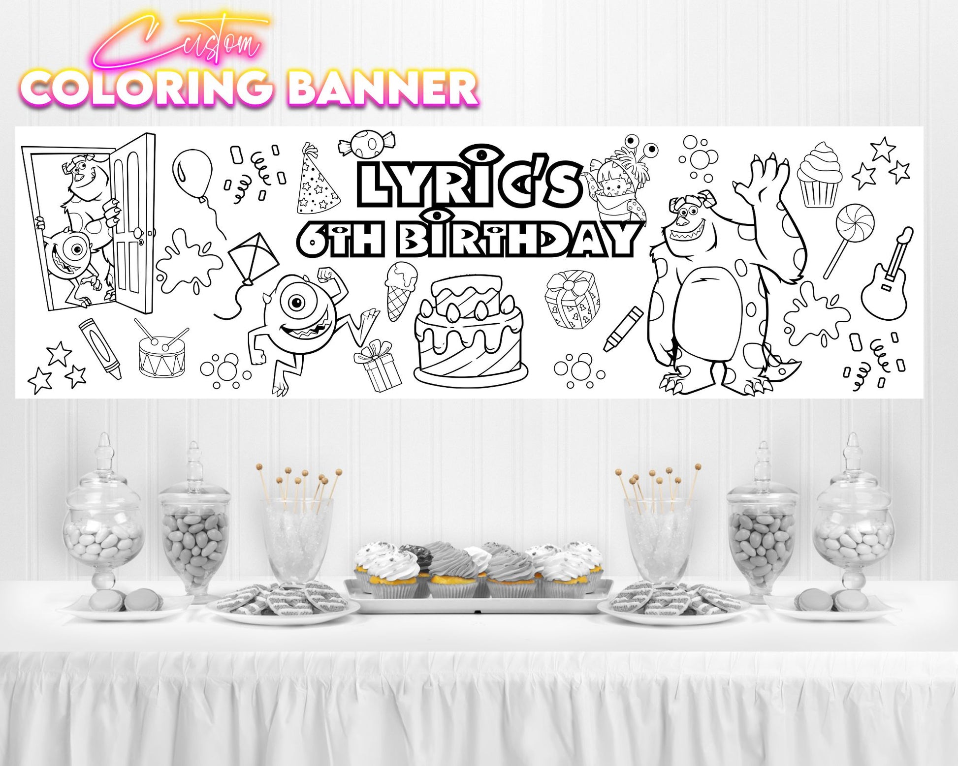 Monsters Inc Birthday Coloring Banner | Coloring Fun | Family Fun | Group Activity | Birthday Party Activity | Coloring Banner