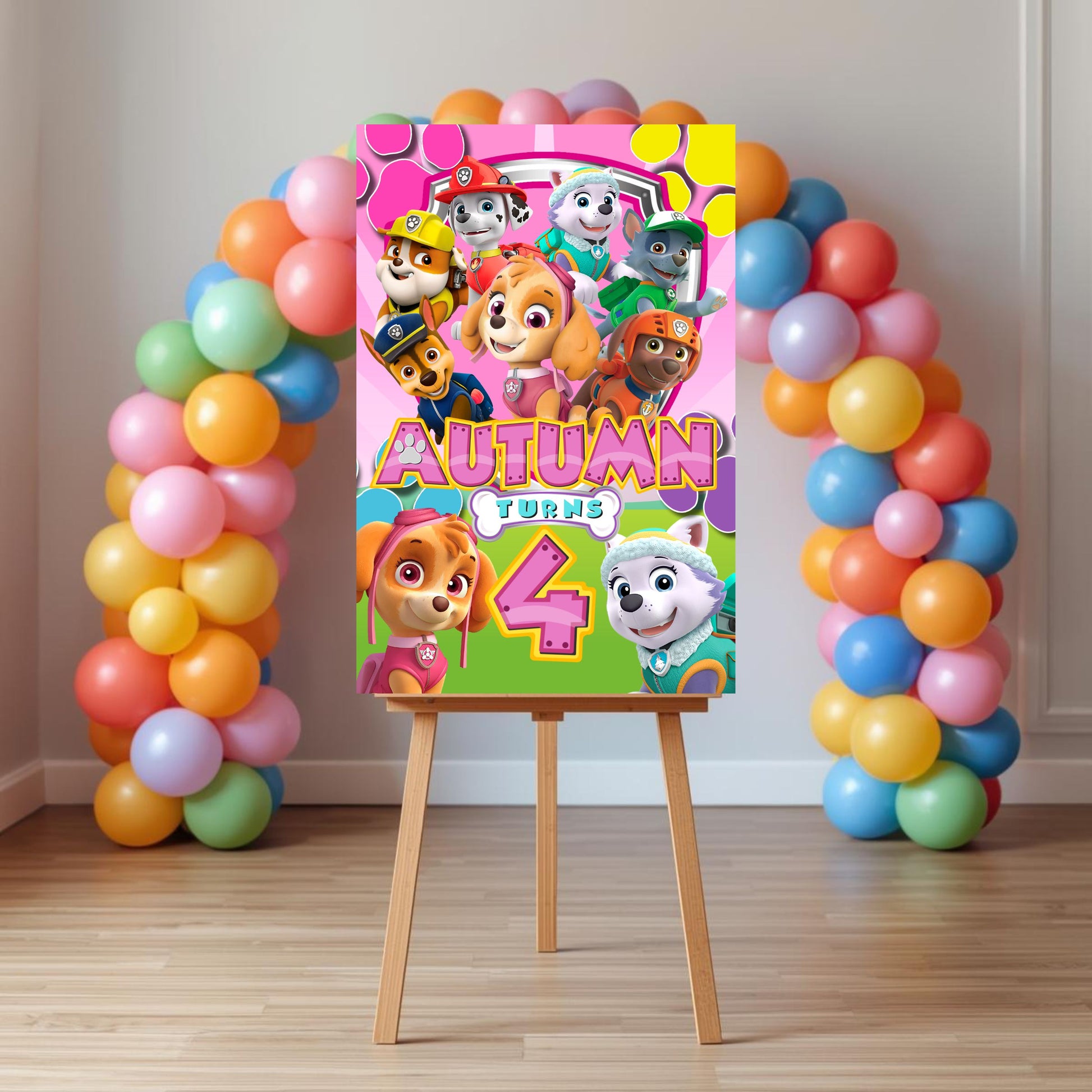 Paw Patrol Girl Party Sign | Digital Party Sign | Editable Text with CANVA PRO | Welcome Party Sign | 20x30 | Digital File Only